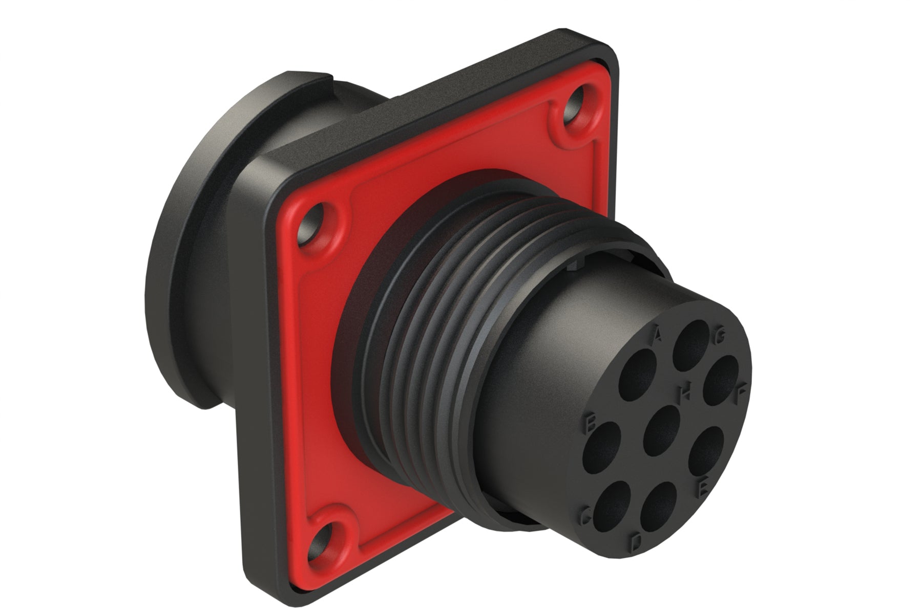 Receptacle, Square Flange, 8 Position, Male, Shell Size 14, Silicone Seal with Seal Gasket, Auto-Lock