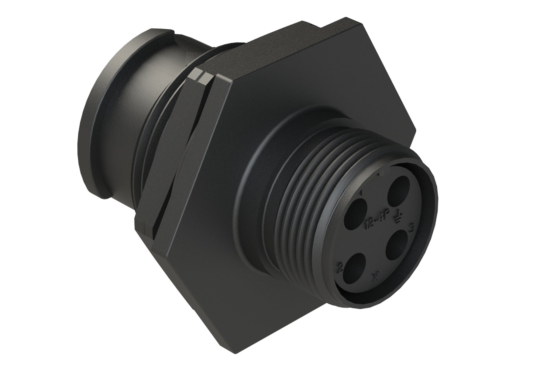 Receptacle, Jam Nut, 4 Position, Male, Shell Size 12, Silicone Seal, Auto-Lock