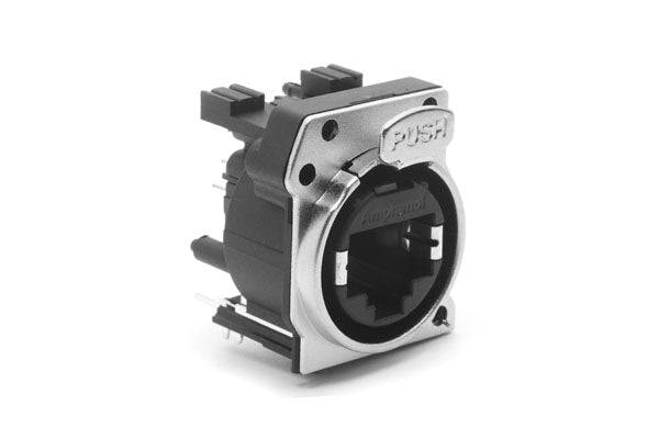 XLRnet B Type Ethernet Chassis Mount, Vertical PCB, Class D, Non-Shielded, Black, Bulk Packaging