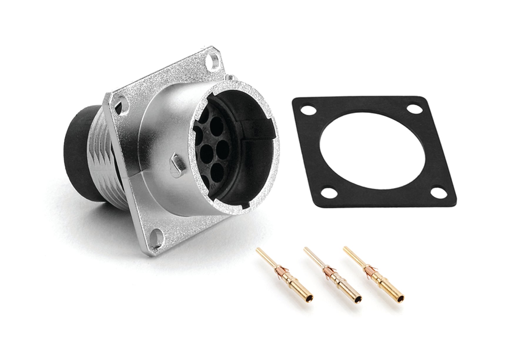 Receptacle Kit, Square Flange, 7 Position, Male, Shell Size 14, includes Machined Contacts